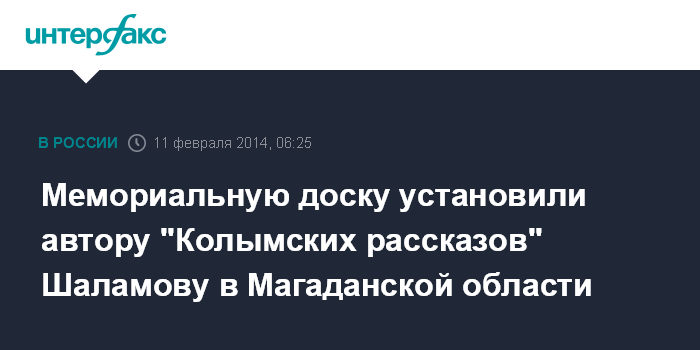 Москва. 11 февраля. INTERFAX.RU - Мемориальную доску автору знаменитых "Колымских рассказов" Варламу Шаламову установили на фасаде противотуберкулезного диспансера в поселке Дебин Магаданской области, сообщает пресс-служба правительства региона.