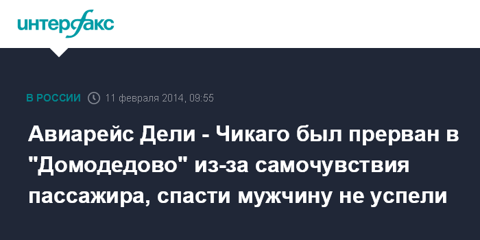Москва. 11 февраля. INTERFAX.RU - Гражданин Индии скончался на борту самолета Дели - Чикаго до вынужденной посадки в Москве, сообщил "Интерфаксу" источник в экстренных службах аэропорта "Домодедово", где самолет совершил вынужденную посадку.
