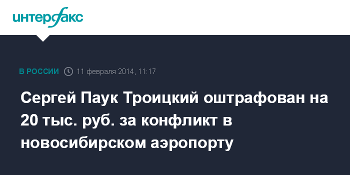 Сергей Паук Троицкий оштрафован на 20 тыс. руб. за конфликт в новосибирском аэропорту