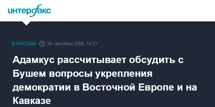 Вильнюс. 28 сентября. INTERFAX.RU - Президент Литвы Валдас Адамкус, находящийся с визитом в США, в понедельник, как ожидается, встретится с президентом США Джорджем Бушем.