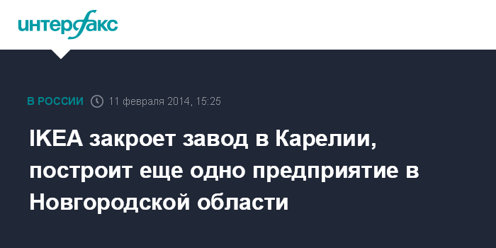 IKEA закроет завод в Карелии, построит еще одно предприятие в Новгородской области