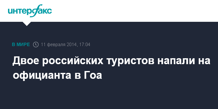 Москва. 11 февраля. INTERFAX.RU - Двое россиян арестованы в Северном Гоа (Индия) после того, как они напали с ножом на обслуживающего их официанта и изуродовали его лицо, сообщает The New York Times.