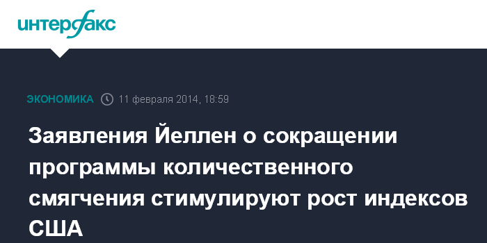 Дж.Йеллен, вступившая в должность главы ФРС 1 февраля 2014 года, в своем первом публичной выступлении на новому посту пообещала придерживаться политики своего предшественника на этом посту Бена Бернанке. По ее словам ФРС, вероятно, продолжит сокращать объем программы покупки активов сдержанными темпами на ближайших заседаниях.