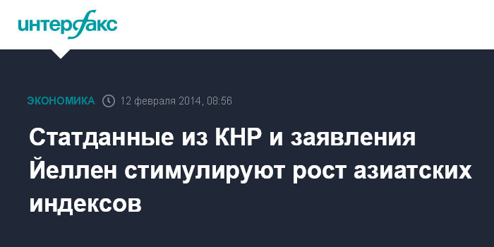 Статданные из КНР и заявления Йеллен стимулируют рост азиатских индексов