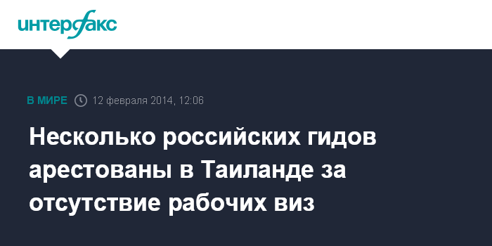Москва. 12 февраля. INTERFAX.RU - Семь российских гидов были арестованы за нелегальную работу в Паттайе (Таиланд), сообщает Pattaya One.