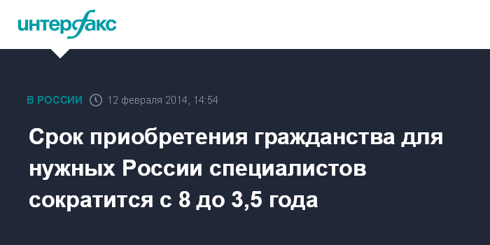 Срок приобретения гражданства для нужных России специалистов сократится с 8 до 3,5 года