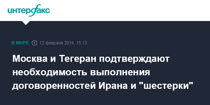 Москва и Тегеран подтверждают необходимость выполнения договоренностей Ирана и "шестерки"
