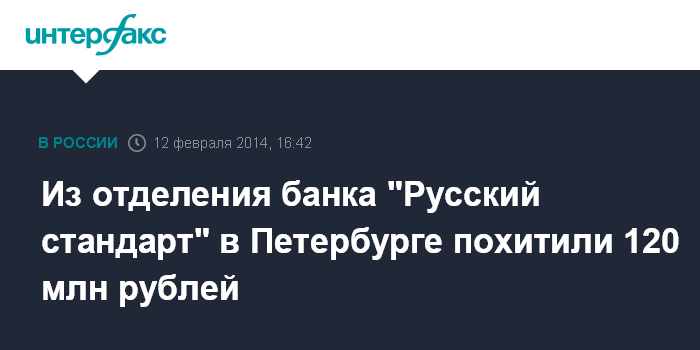 Из отделения банка "Русский стандарт" в Петербурге похитили 120 млн рублей