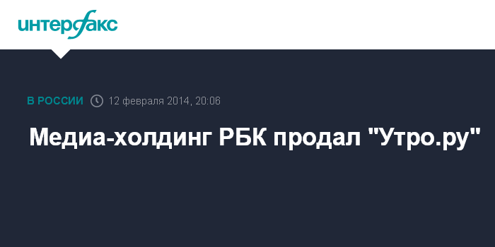 Москва. 12 февраля. INTERFAX.RU - Медиа-холдинг РБК продал новостной портал "Утро.ру", сообщили "Интерфаксу" источник в компании и источник на медиа-рынке.