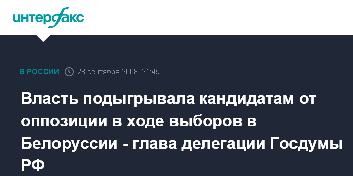 Минск. 28 сентября. ИНТЕРФАКС-ЗАПАД - В ходе парламентских выборов власти Белоруссии подыгрывали кандидатам от оппозиции, в результате чего они смогли дойти до голосования, заявил "Интерфаксу" руководитель мониторинговой делегации Госдумы РФ Алексей Островский.