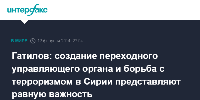 Гатилов: создание переходного управляющего органа и борьба с терроризмом в Сирии представляют равную важность