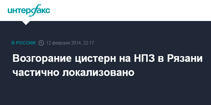 Между тем транспортники отвергли причастность к инциденту с возгоранием цистерн на Рязанском нефтеперерабатывающем заводе. "РЖД не имеют отношения к инциденту на Рязанском НПЗ, поскольку он произошел на подъездных путях предприятия. Цистерны также принадлежат заводу, сотрудники также закреплены за ним", - заявили "Интерфаксу" в монополии. "Маневровые работы проводились работниками предприятия", - добавил собеседник агентства.