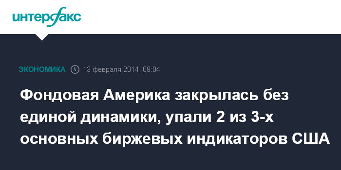 13 февраля. FINMARKET.RU - Торги в среду два из трех основных фондовых индексов США завершили снижением после самого значительного повышения Standard & Poor's 500 за последние четыре сессии, сообщает Bloomberg.