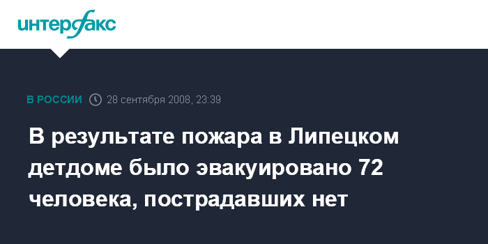 Москва. 28 сентября. ИНТЕРФАКС-ЦЕНТР - В Липецке произошло возгорание в детском доме-интернате с ночным прибиванием детей, все дети эвакуированы, сообщили "Интерфаксу" в пресс-службе Центрального регионального центра МЧС.