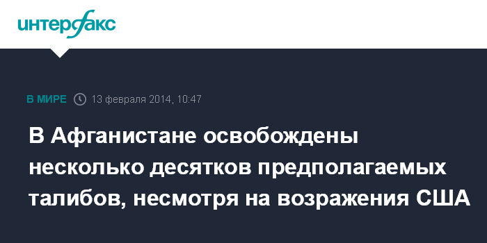 Дели. 13 февраля. INTERFAX.RU - Власти Афганистана освободили в четверг 65 узников тюрьмы Баграм, несмотря на протесты США, передает агентство AP.