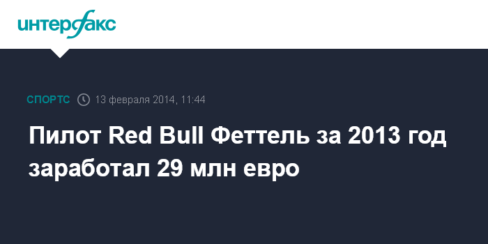 Москва. 13 февраля. INTERFAX.RU - Пилот Red Bull Себастьян Феттель за 2013 год заработал 29 млн евро, информирует Motorsport.