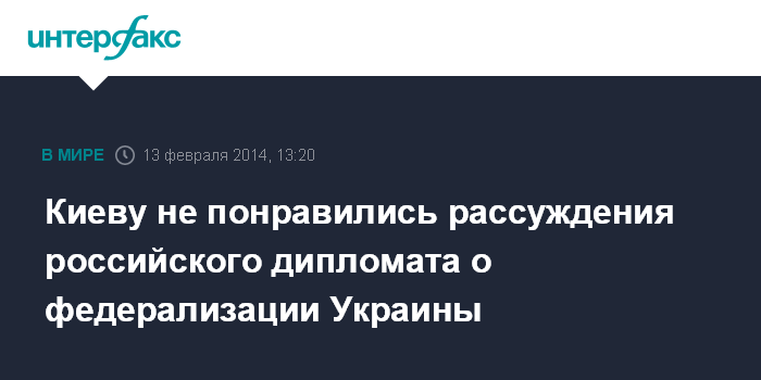 Киеву не понравились рассуждения российского дипломата о федерализации Украины