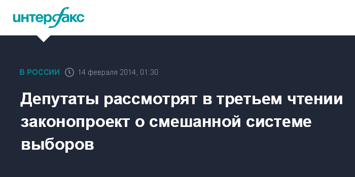 Москва. 14 февраля. INTERFAX.RU - Госдума в пятницу завершит работу над новой редакцией закона, возвращающего смешанную систему избрания федерального парламента.