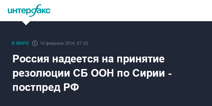 Россия надеется на принятие резолюции СБ ООН по Сирии - постпред РФ