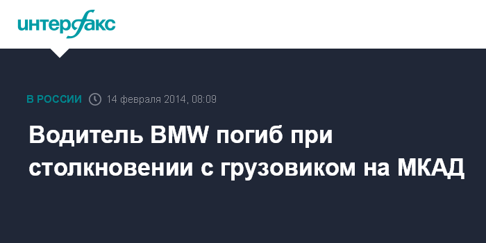 Москва. 14 февраля. INTERFAX.RU - Один человек погиб в результате ДТП на МКАД, сообщили "Интерфаксу" в пресс-службе столичного управления ГИБДД в пятницу.