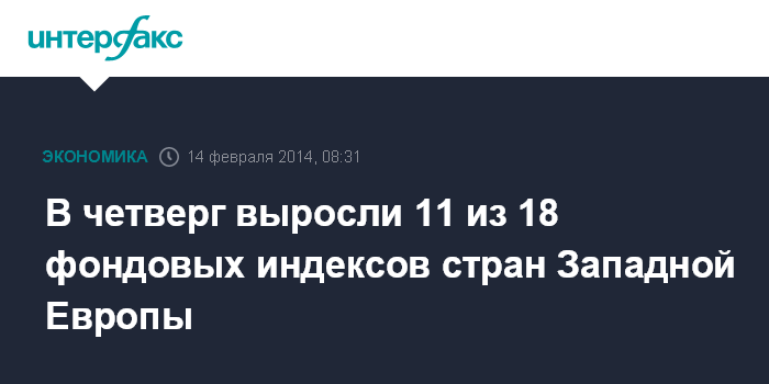В четверг выросли 11 из 18 фондовых индексов стран Западной Европы