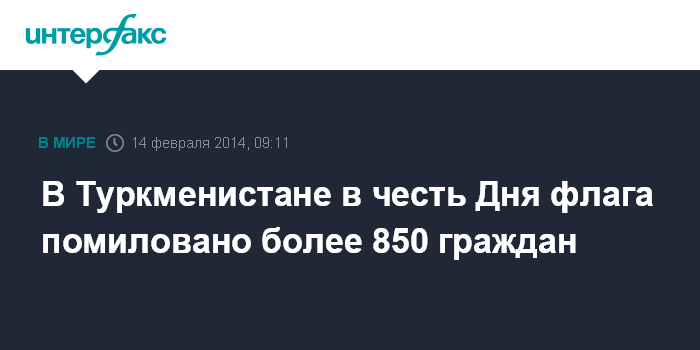 Москва. 14 февраля. INTERFAX.RU - В честь национального праздника - Дня государственного флага, отмечаемого 19 февраля, президент Туркменистана Гурбангулы Бердымухамедов подписал указ о помиловании 859 граждан.