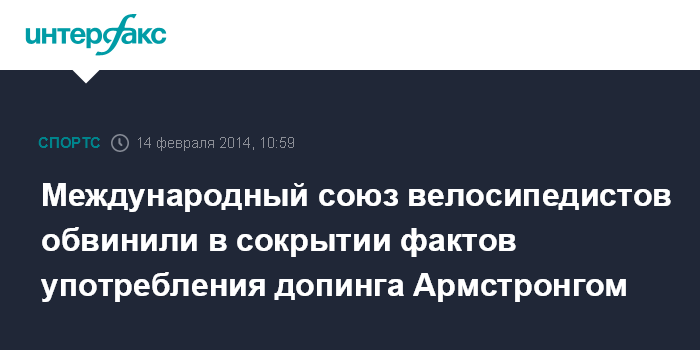 Международный союз велосипедистов обвинили в сокрытии фактов употребления допинга Армстронгом