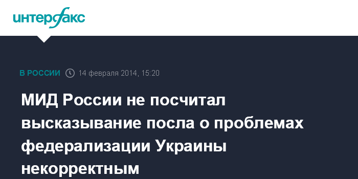 МИД России не посчитал высказывание посла о проблемах федерализации Украины некорректным