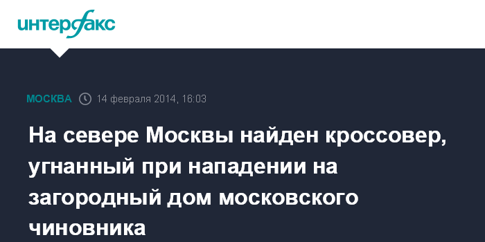 На севере Москвы найден кроссовер, угнанный при нападении на загородный дом московского чиновника