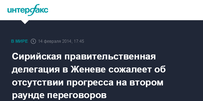 Брюссель. 14 февраля. INTERFAX.RU - Заместитель министра иностранных дел Сирии Фейсал Микдад, представляющий делегацию сирийских властей на переговорах в Женеве, в пятницу выразил сожаление в связи с тем, что второй раунд переговоров не принес успеха.