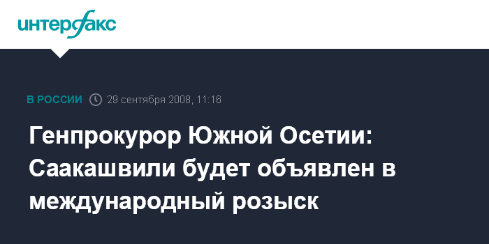 Москва. 29 сентября. INTERFAX.RU - Генпрокуратура Южной Осетии на следующей неделе объявит президента Грузии Михаила Саакашвили в международный розыск.
