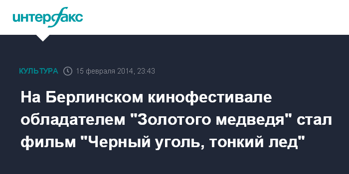 Берлин. 15 февраля. ИНТЕРФАКС - Обладателем главного приза - "Золотого медведя" - 64-го Берлинского кинофестиваля стал фильм китайского режиссера Дяо Йиннаня "Черный уголь, тонкий лед".