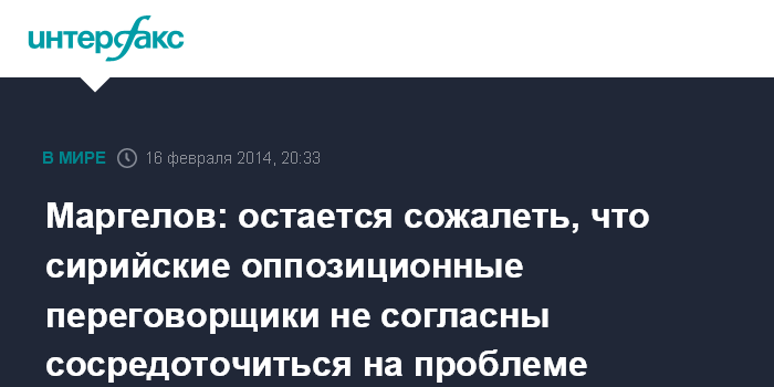 Маргелов: остается сожалеть, что сирийские оппозиционные переговорщики не согласны сосредоточиться на проблеме терроризма