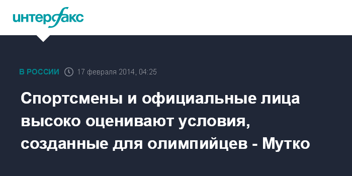 Москва. 17 февраля. INTERFAX.RU - Спортсмены и официальные лица иностранных делегаций высоко оценивают условия, созданные в Сочи для проведения XXII зимних Олимпийских игр, заявил министр спорта России Виталий Мутко.