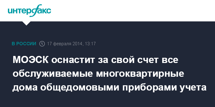 МОЭСК оснастит за свой счет все обслуживаемые многоквартирные дома общедомовыми приборами учета