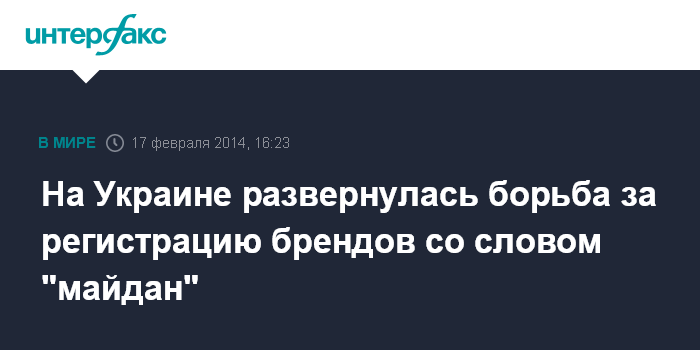 Киев. 17 февраля. INTERFAX.RU - Ряд общественных деятелей подали заявки на регистрацию брендов, связанных с протестными акциями в центре Киева, в частности, на торговые марки, содержащие слово "майдан".