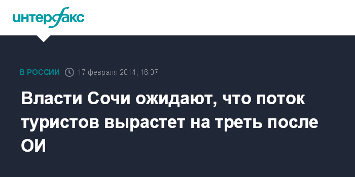 Власти Сочи ожидают, что поток туристов вырастет на треть после ОИ