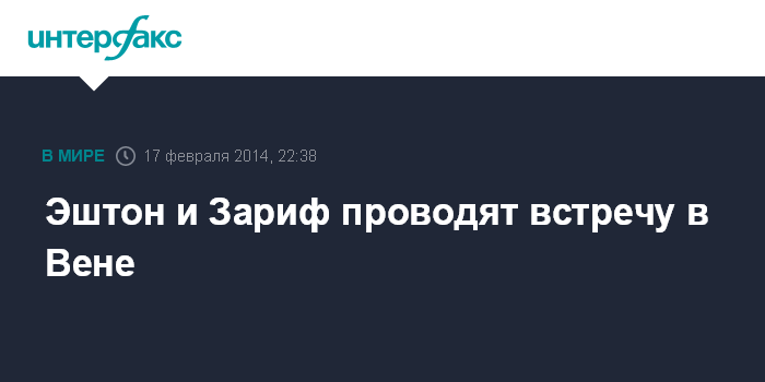 Брюссель. 17 февраля. INTERFAX.RU - Верховный представитель ЕС по иностранным дела Кэтрин Эштон начала встречу с главой иранского МИД Джавадом Зарифом в Вене, сообщил представитель главы европейской дипломатии Майкл Манн на своей странице в "Твиттере".