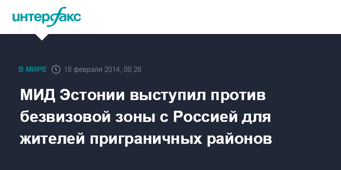 Таллин. 18 февраля. INTERFAX.RU - Министр иностранных дел Эстонии Урмас Паэт назвал неприемлемой идею введения безвизового режима с Россией для жителей приграничных регионов.