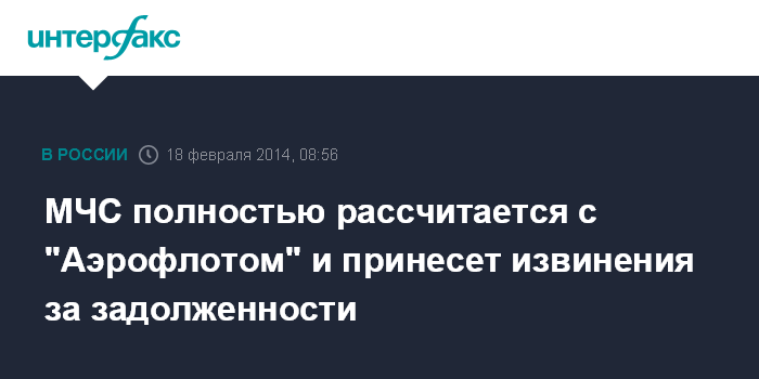 МЧС полностью рассчитается с "Аэрофлотом" и принесет извинения за задолженности