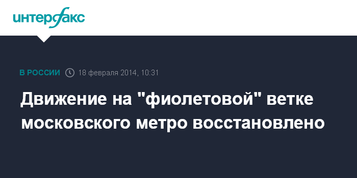 "В 09:05 вторника была обнаружена неисправность контактной сети между станциями "Таганская" и "Текстильщики", после чего на этом участке не осуществлялось движение поездов в обоих направлениях. В 10:14 движение восстановлено на всем протяжении фиолетовой ветки от "Жулебино" до "Планерной", - сообщили "Интерфаксу" в пресс-службе метро.
