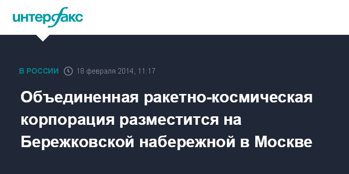 Объединенная ракетно-космическая корпорация разместится на Бережковской набережной в Москве
