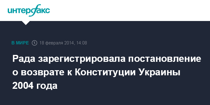 Рада зарегистрировала постановление о возврате к Конституции Украины 2004 года