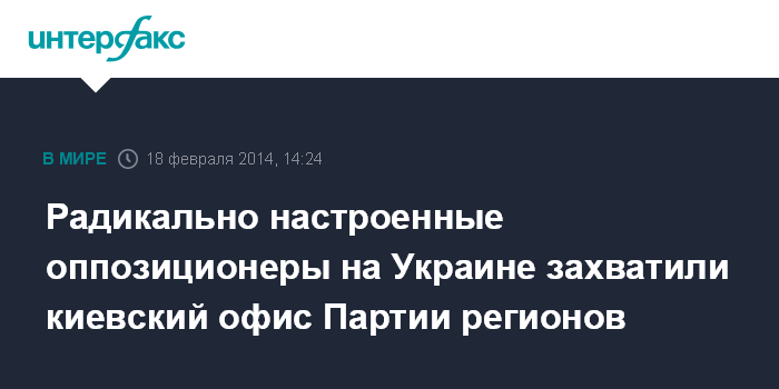 Москва. 18 февраля. INTERFAX.RU - Радикальные сторонники украинской оппозиции во вторник днем взломали входную дверь в офис Партии регионов Украины на улице Липской в центре Киева и прошли во внутренний двор здания.