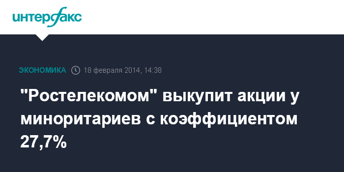 "Ростелекомом" выкупит акции у миноритариев с коэффициентом 27,7%