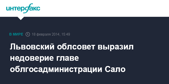 Львов. 18 февраля. INTERFAX.RU - Львовский областной совет выразил недоверие главе Львовской облгосадминистрации Олегу Сало после отчета за выполнение обладминистрацией делегированных областным советом полномочий за минувший год.
