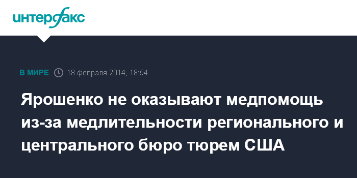 Ярошенко не оказывают медпомощь из-за медлительности регионального и центрального бюро тюрем США