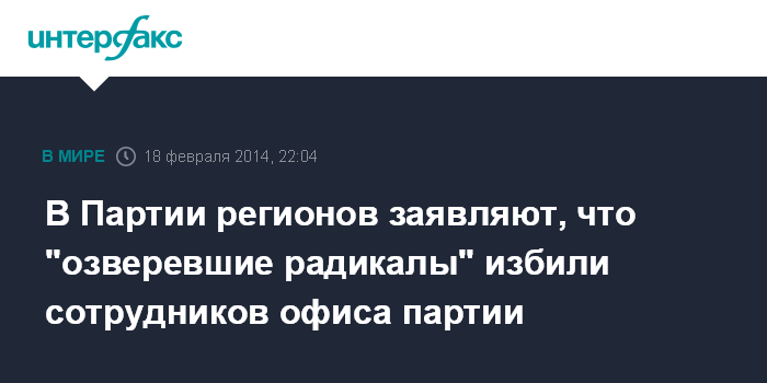 "Во время захвата здания, в котором расположен офис Партии регионов один человек умер. Он работал инженером. Ему было 66 лет. Трое сотрудников получили серьезные травмы", - говорится в заявлении пресс-службы Партии регионов, обнародованном во вторник вечером.