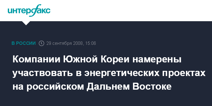 Компании Южной Кореи намерены участвовать в энергетических проектах на российском Дальнем Востоке