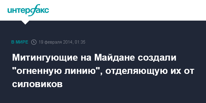 Москва. 19 февраля. INTERFAX.RU - Участники беспорядков, которые происходят в центре Киева, возвели баррикаду по диагонали от угла Дома профсоюзов до Стелы Независимости и подожгли ее. Как передает корреспондент агентства "Интерфакс-Украина", баррикада возведена из покрышек и других горючих материалов. Она пылает, что мешает силовикам продолжить штурм Майдана. Пламя от баррикады плавит светофоры на дороге. Дополнительным сдерживающим фактором для правоохранителей является то, что дым идет в их сторону.
